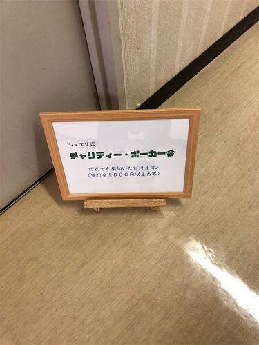 昨夜はシュマリさん主催のチャリティーポーカーでした。選挙事務所から会場まで2.6kmとナビが示していたので、歩いて向かいました。 会場に着くと、 シュマリさんが設営がてら、七十七くんと話してる様子でした。 ひらがなポーカーで、ホールデムできないか…