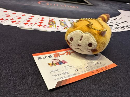 昨日は初期スタック1万点で参戦してみました。 いつもならカウンターで見守るだけなんですが、あえて1枚チャレンジしてみたのです。 AAプリフロオールインにわじさんコールしてくれてダブルアップ。1stブレイクは超えましたが、その直後に飛びました。笑 と…